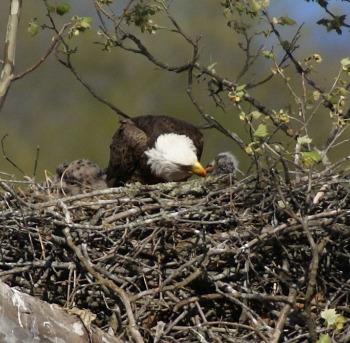 Bald eagle moms are very fortunate, as parenting duties are split evenly between moms and dads. Eagles lay one to three eggs per year, which hatch after about 35 days. The nestlings will remain in the next for 10-14 weeks, during which time both mom and dad will care for them.