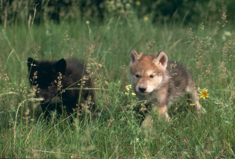Gray wolf moms have litters of four to six pups, who remain with her in the den for six to eight weeks. Only the alpha female in a pack of gray wolves will become a mother, but all adult pack members contribute to supporting her and her pups. Young wolves will stay with their parents for two or more years before leaving to start their own territory, or they may stay with the pack and eventually replace their mother or father as alpha.