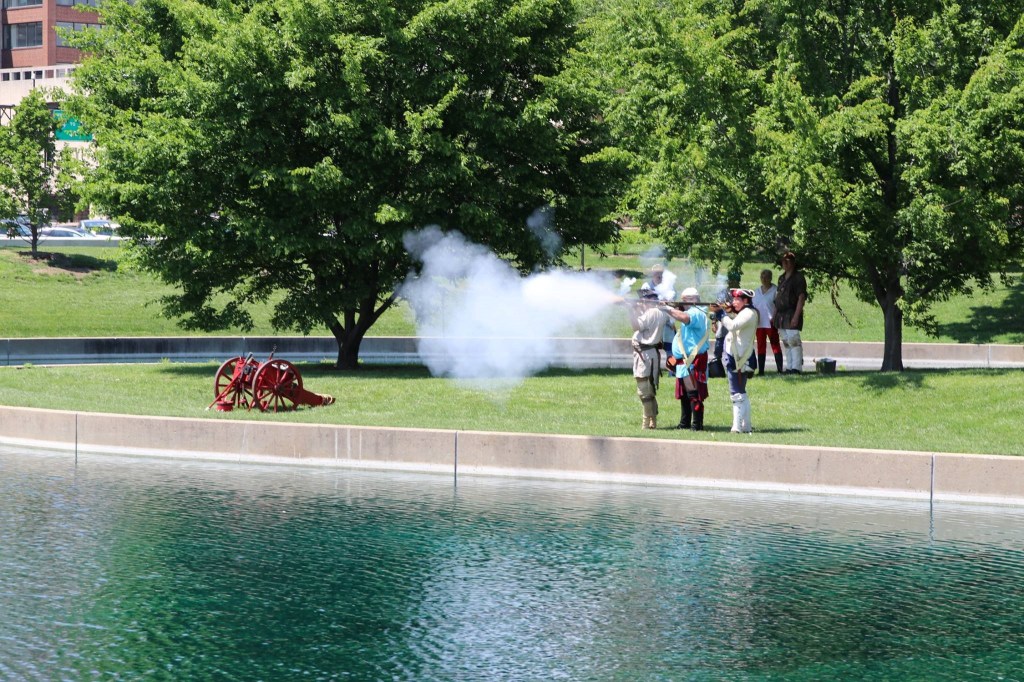 The National Park Service commemorates the Battle of St. Louis every year near the anniversary date.  The event takes place this year on May 28th from 10 a.m. to 4 p.m. on the south end of the Gateway Arch grounds.  Interpretive rangers and living history volunteers in 18th-century attire will be on hand to explain the story of St. Louis’ role in the American Revolution and the implications of the settlers’ victory.  There will also be periodic musket- and cannon-firing demonstrations. Reservations are not required.