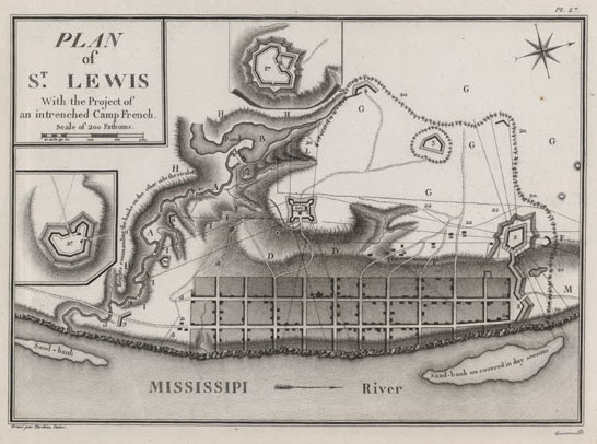 After fur traders warned the Spanish Lt. Governor Fernando de Leyba about the impending British attack, he began developing plans for his town’s defense.  De Leyba made plans for four round defensive towers to be built on which to place sharpshooters and cannons.  Only one tower – named Fort San Carlos –was finished by the time the attackers neared St. Louis.  The locals managed to place five cannons on its roof as well as trenches along the outer walls of the town.