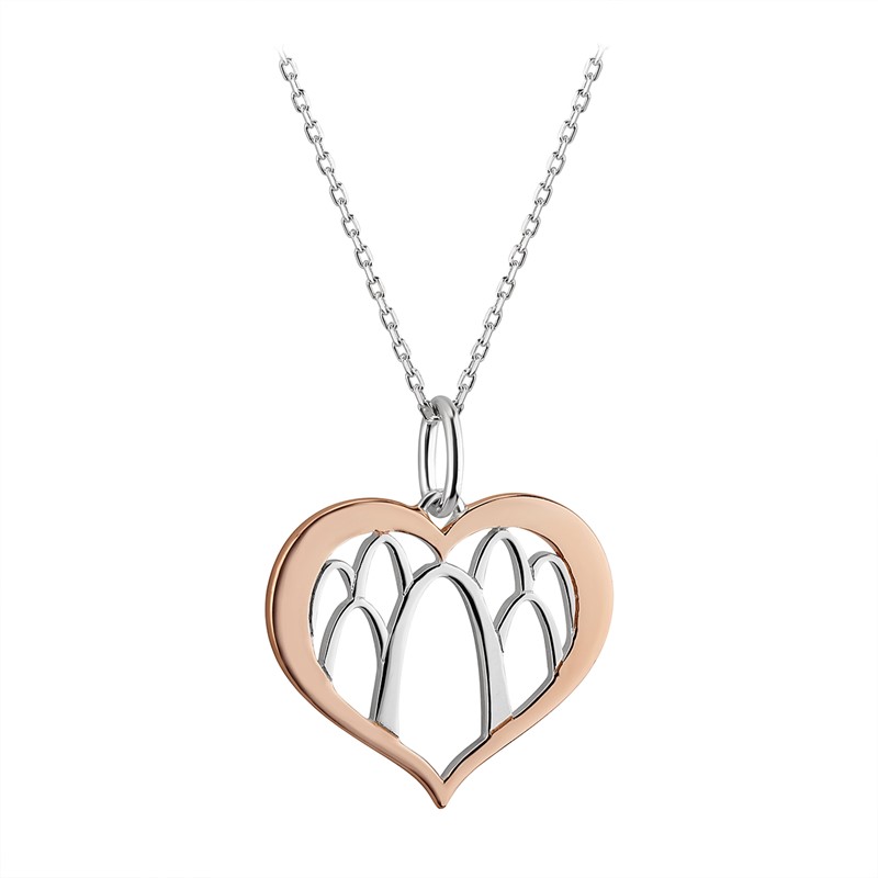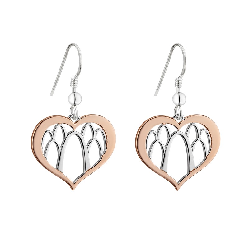 If your Valentine enjoys wearing a matching earring and necklace set, we have two gorgeous options to choose from.  The first set is perfect for this special day.  Our sterling silver and rose gold earrings feature a repeating Arch pattern inside a heart-shaped outline.  And the matching sterling silver necklace has a heart-shaped pendant in the same design.