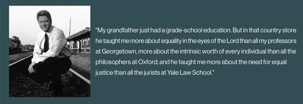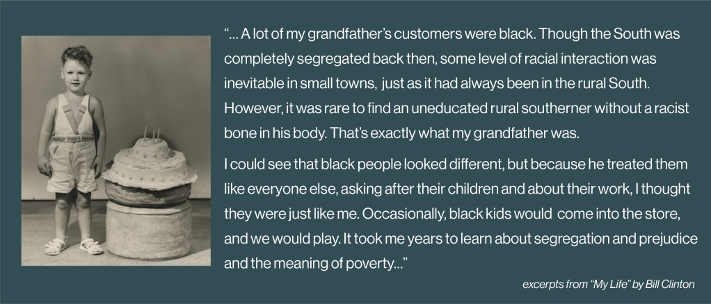 Bill Clinton credits his grandfather for his lifelong respect for all people, regardless of their race or background: