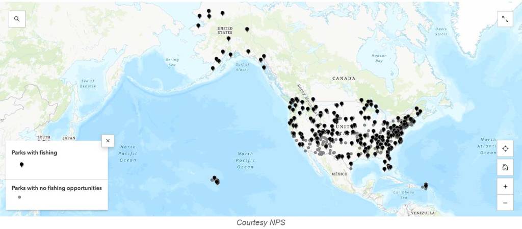 Speaking of kids, the NPS Junior Ranger Angler program is a perfect way to get youngsters interested in the sport. Many national park sites that permit fishing offer the program’s special activity booklet as well as Junior Ranger Angler badges. You can find participating parks on the National Park Service Fish & Fishing website.