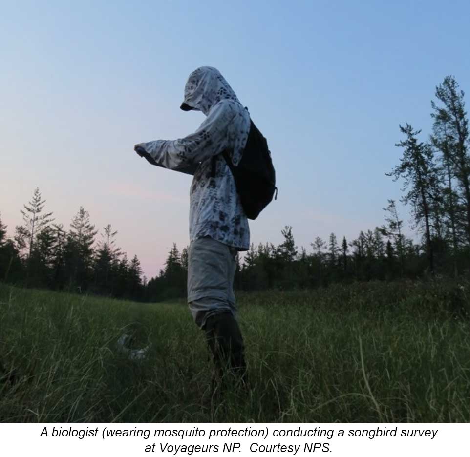 NPS biologists have been monitoring songbird populations at Voyageurs National Park in northern Minnesota since 1995, conducting annual songbird surveys each June at 60 different points across the vast park. More than 100 species of songbirds have been documented there.