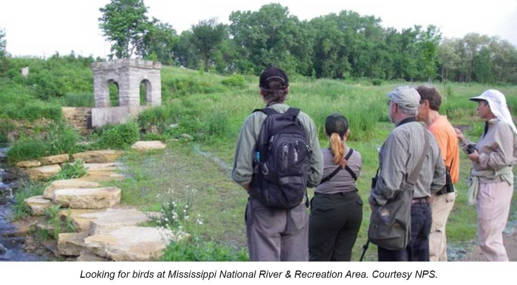 The situation for bird life is comparable at Mississippi National River & Recreation Area in Minnesota. NPS researchers there annually conduct songbird surveys at 49 locations scattered among nine city, county, and regional parks in the 72-mile length of the national park boundary. A total of 88 species has been documented, (an average of 62 species per year) since the studies began in 2015.