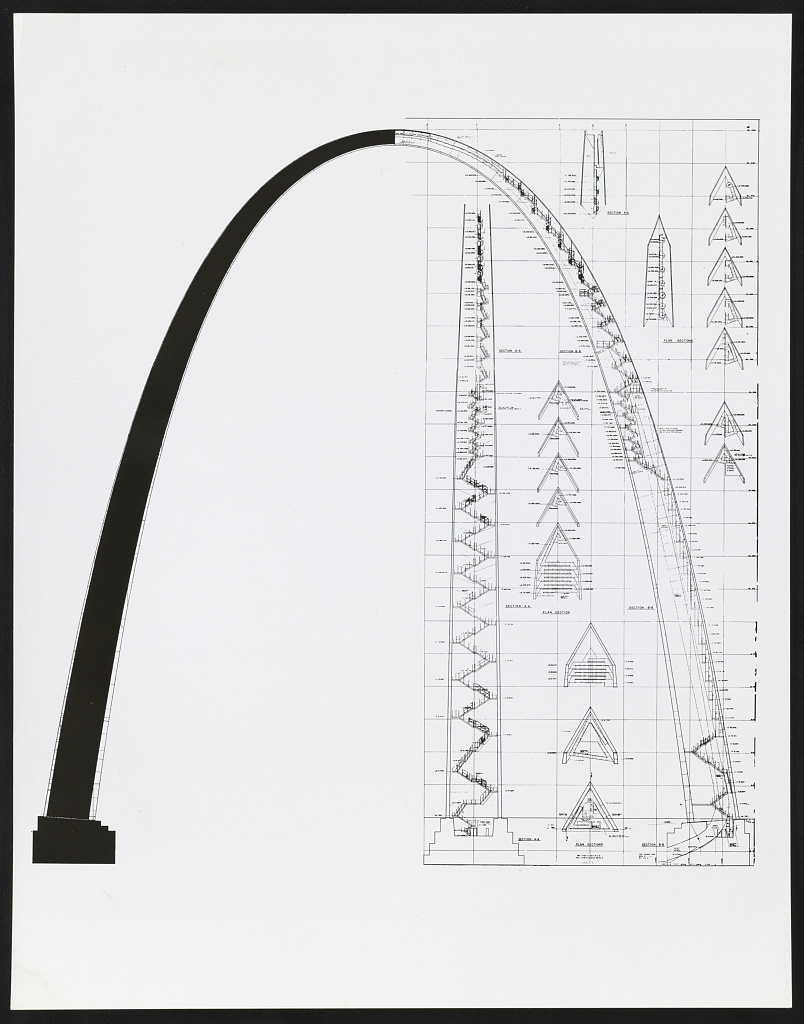 Architectural drawing of the staircase inside the Gateway Arch. Credit: Library of Congress