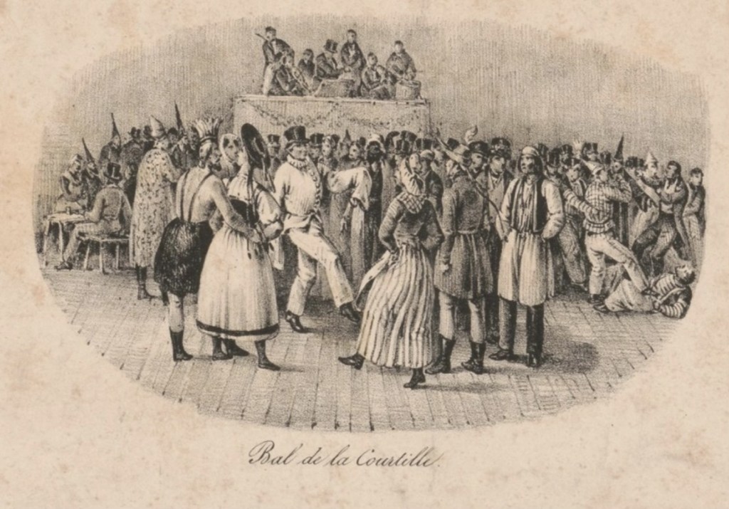 The next holiday celebration, La Guiannée, took place on New Year’s Eve. On the evening of December 31st, a troupe of male singers dressed in costume went door-to-door throughout the community. As they sang, they asked for donations from each household for the upcoming Epiphany feast. The group collected things like lard, poultry, eggs, wheat, and candles to feed the community and decorate for the Epiphany Celebration. (The 250-year-old tradition of La Guiannée is still celebrated in Ste. Geneviève to this day.)