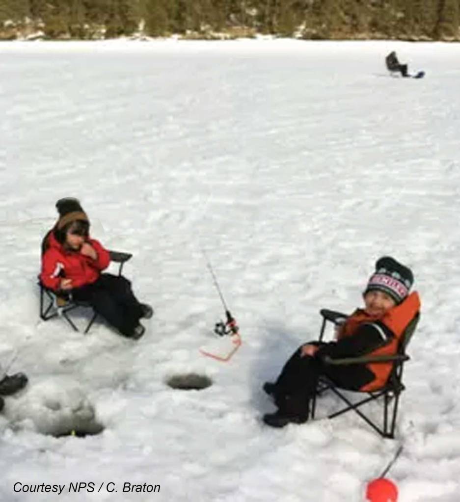 Experienced ice anglers and National Park Service rangers offer instruction, and provide poles, tackle, and bait. Participants can even warm up in a heated shelter or peer into the mysterious under-ice world through an underwater camera and learn about the challenging conditions faced by life beneath the ice. Of course, safety is a priority, so the park staff always checks the ice thickness before each event.